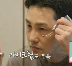 황동주 님이 눈 주변은 물론, 미간과 이마까지 듬뿍 바른 아이크림 제품은 No7 Lift & Luminate Triple Action Eye Cream - Anti-Aging Under Eye Cream for Dark Circles Puffiness 제품입니다. 이 안티에이징 아이 크림은 눈 주위의 섬세한 피부를 위해 특별히 만들어졌으며 노화의 3가지 주요 징후를 해결하기 위해 No7의 트리플 액션 기술로 제작되었습니다.